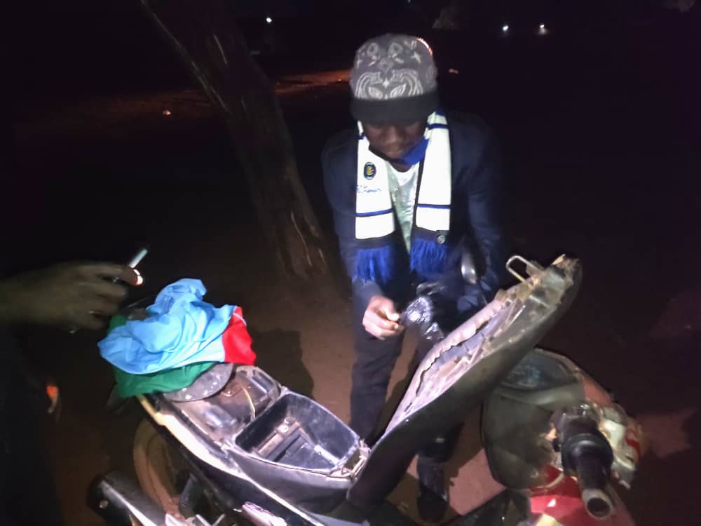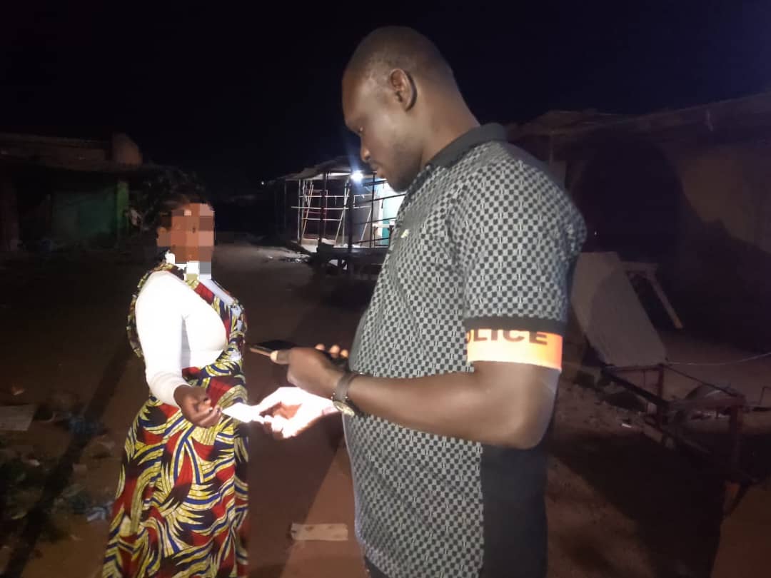 21h44, nous embarquons dans un pick-up avec A.C KAMBOU à bord. Direction la ville pour une tournée de contrôle. Première halte, le rond-point de l’escale. Une équipe mixte(police nationale et police municipale) règlemente la circulation. Pendant que A.C. KAMBOU échange avec l’agent en poste, deux jeunes filles, Émilienne OUEDRAOGO et Adeline KONSEIBO, viennent pour négocier. Elles se sont remorquées à trois sur un engin qui aussi est sans éclairage. Après une brève sensibilisation accepté de leur part, elles sont libérées.