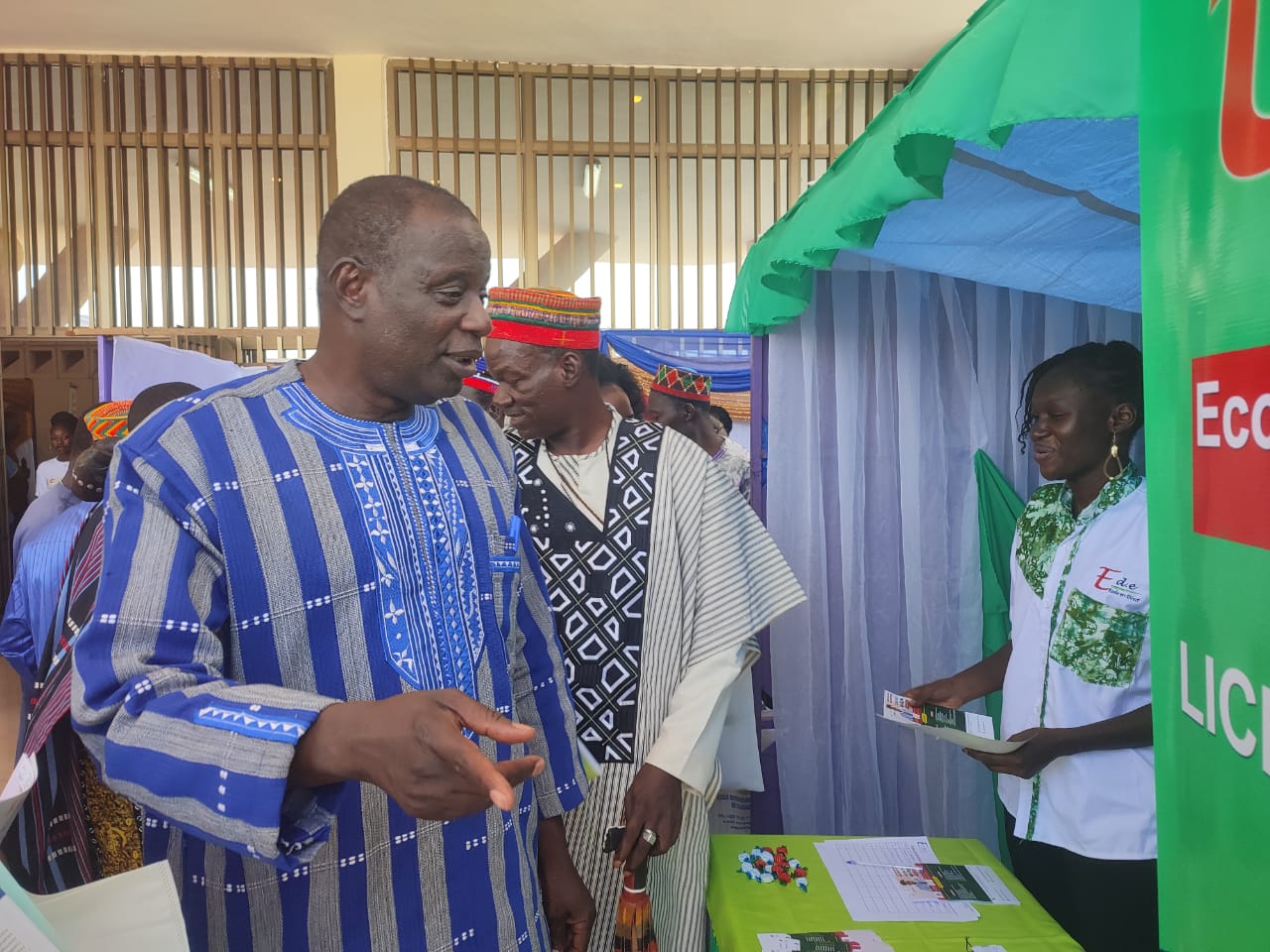 Le haut commissaire Sahabani Zeba et Naaba Sanem visitent le stand d’un institut privé.