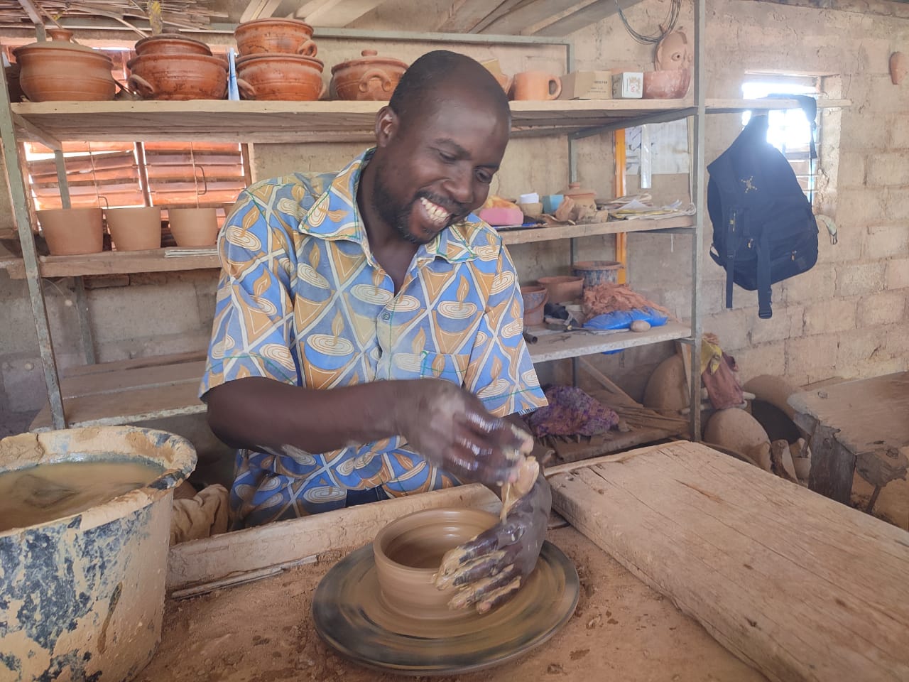 La délégation a ensuite visité le four de cuisson de la céramique et l’atelier de production. Les élèves ont suivi toutes les étapes de fabrication des objets, depuis la recherche et la préparation de l’argile, en passant par le malaxage et le façonnage, jusqu’à la cuisson. Ils ont aussi découvert les foyers améliorés, reconnus pour leur rôle dans l’économie du bois de chauffe et la protection de l’environnement.