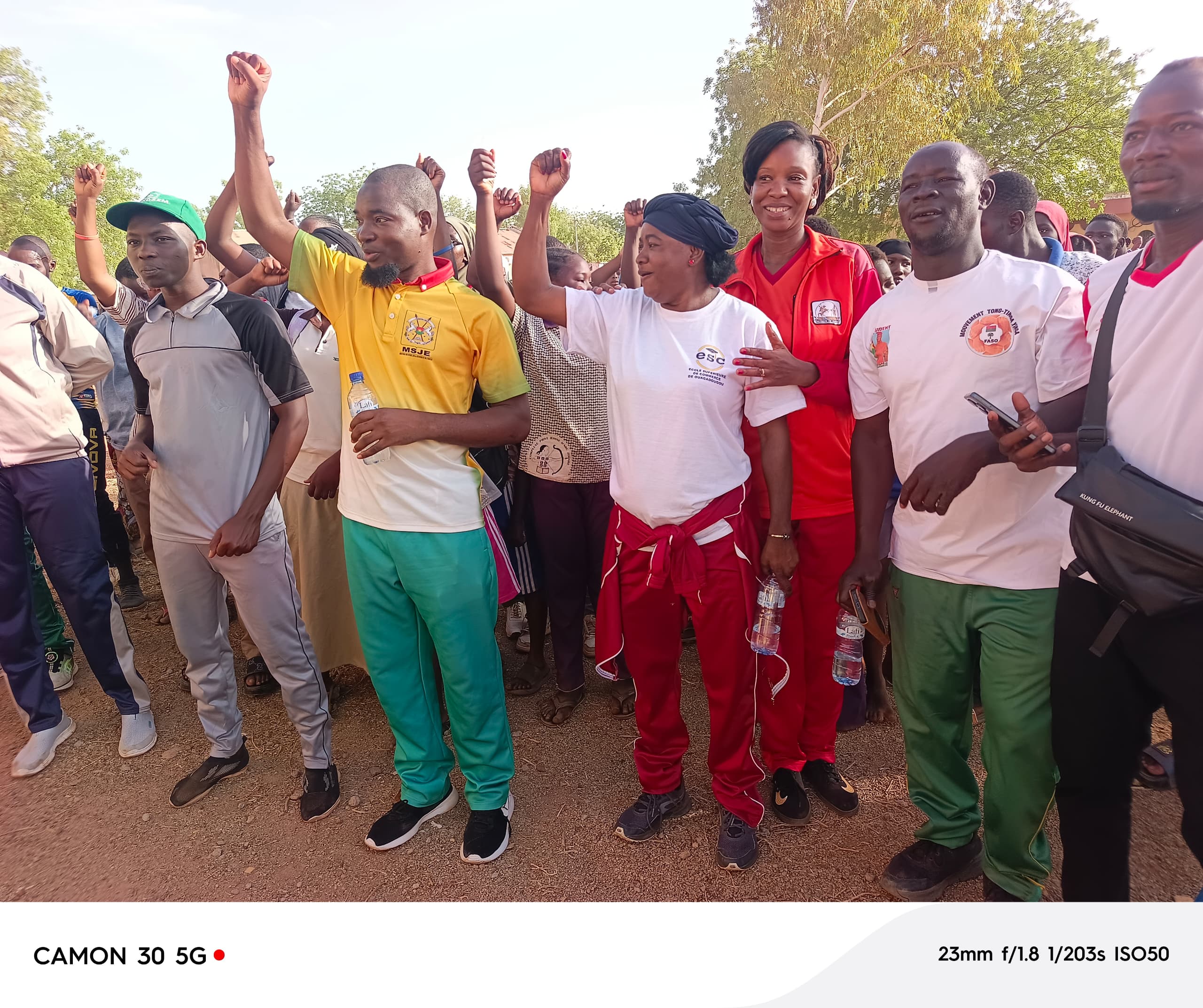 Il est exactement 15 heures lorsque le top départ de la JERM est donné au rond-point Naaba Oubri de Ziniaré. Sous un soleil ardent, jeunes, élèves, Volontaires pour la Défense de la Patrie (VDP) agricoles, Forces de défense et de sécurité (FDS), directeurs et chefs de service forment un large cercle autour de l’autorité provinciale. Dans une ambiance rythmée par des slogans et des coups de sifflets, les participants affichent leur soutien à la Révolution et à son leader, le capitaine Ibrahim Traoré.